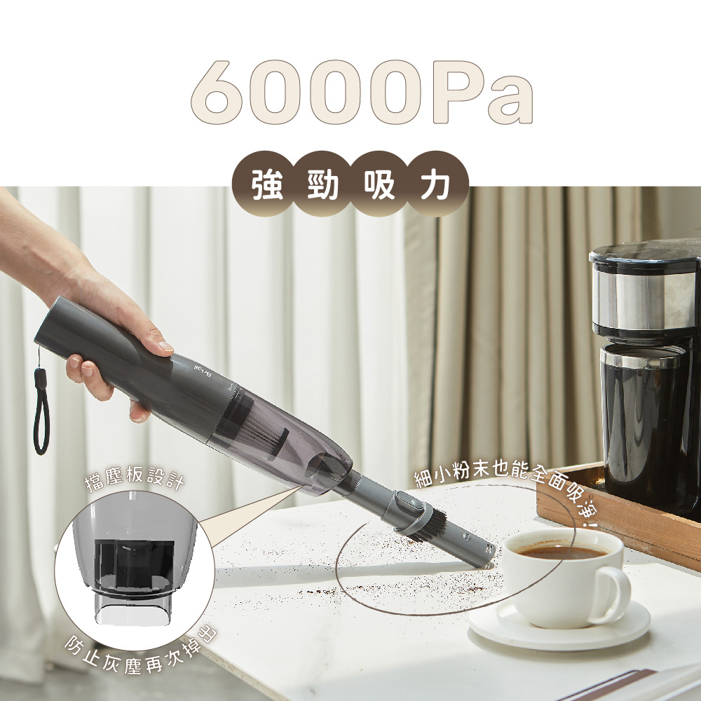- 【6000Pa強勁吸力】▸ 細小粉末全吸淨