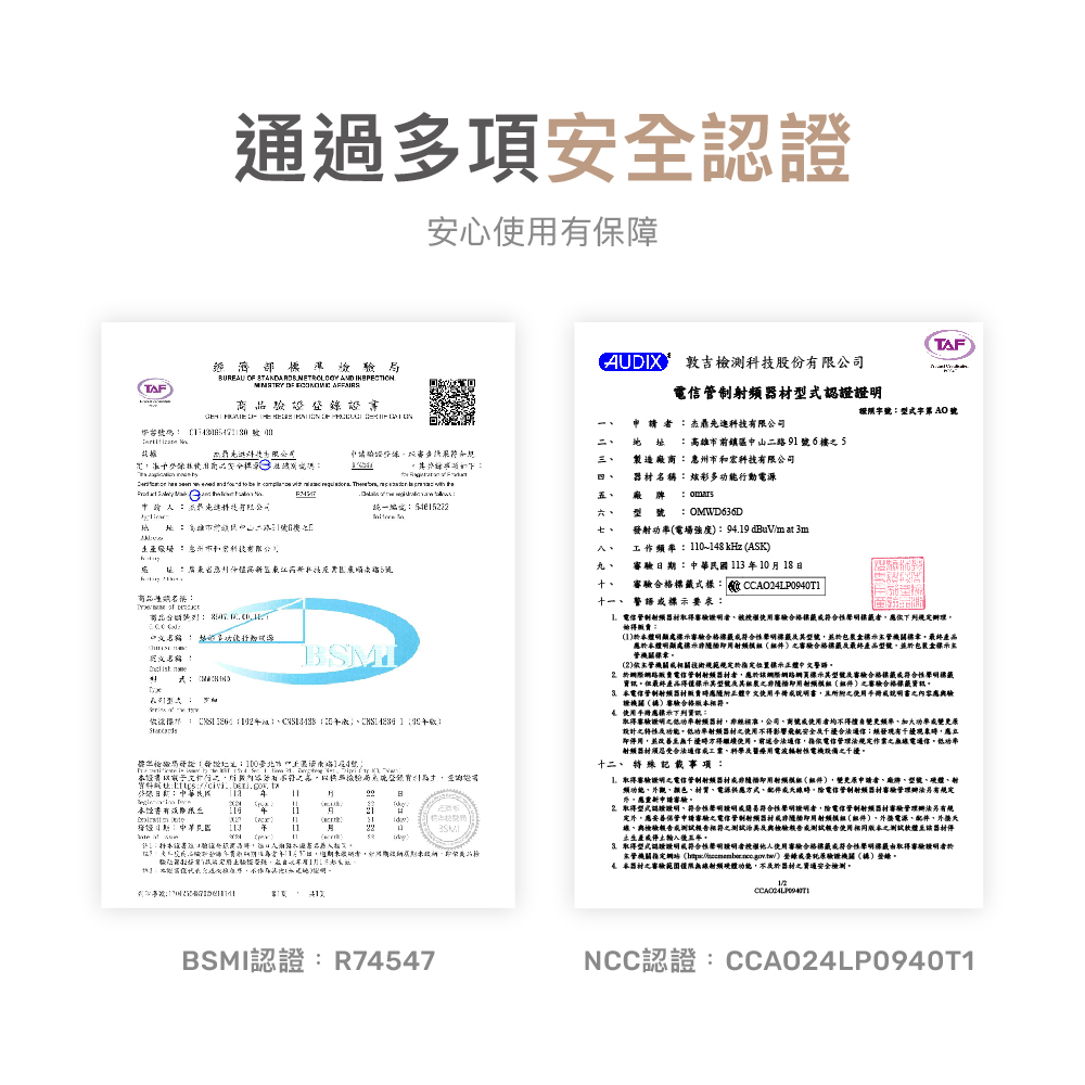 • 通過BSMI及NCC安全認證,安心使用有保障
