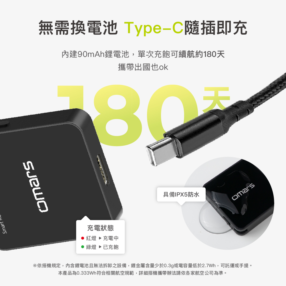 - 【Type-C隨插即充】▸單次續航約180天