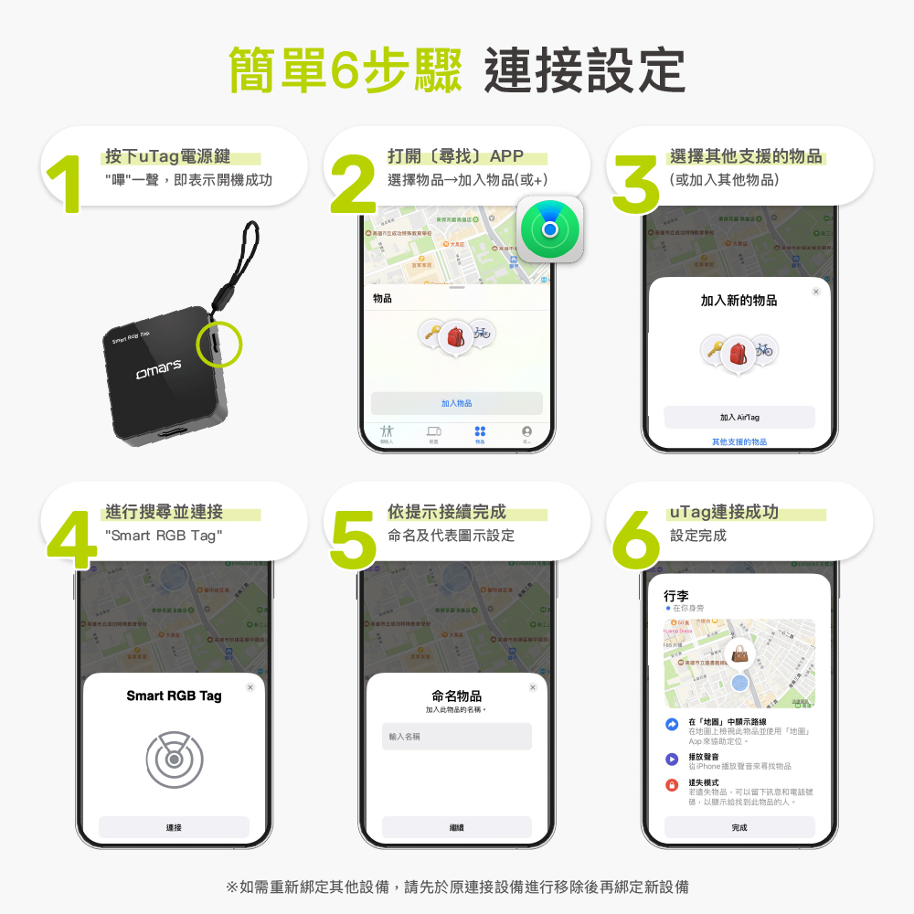 ※uTag如需重新綁定其他設備,請先於原連接裝置進行移除後再綁定新設備。